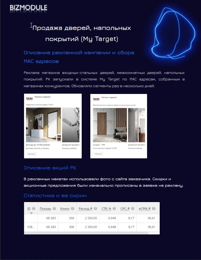 6. Промо-материалы 200 визиток/200 листовок.